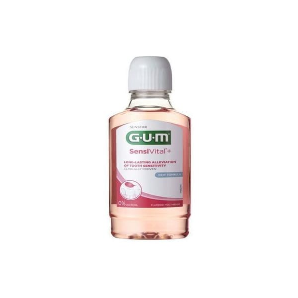 GUM SensiVital Bain de Bouche contient l’agent anti-sensibilité : Nitrate de potassium (5%) dont les effets ont été prouvés cliniquement. SensiVital Bain de bouche permet de Revitaliser les gencives grace à sa formule riche en Aloe Vera, Vitamine E et Pro-Vitamine B5 Favoriser la reminéralisation de l’émail par 250 ppm de Fluor et Isomalt Eliminer les bactéries à l’aire de Chlorure de Cétylpyridinium