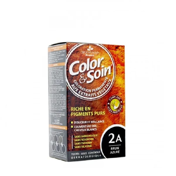 Le Laboratoire les 3 CHÊNES® a développé une ligne de coloration permanente 100% efficace et naturelle : sans silicone sans ammoniaque, sans résorcine, sans paraben.. Color et Soin® Testée dermatologiquement, Color&Soin est prescrite par des dermatologues. Sans ammoniaque, Sans résorcine, Sans paraben, ni silicone 100% couverture cheveux blanc 100 % éclat et brillance Résitance aux U.V. et au chlore Etui contenant : un flacon de 60 mL de teinture aux extraits végétaux un flacon de 60 mL de fixateur un sachet de 15 mL de baume capillaire une paire de gants protecteurs une notice explicative