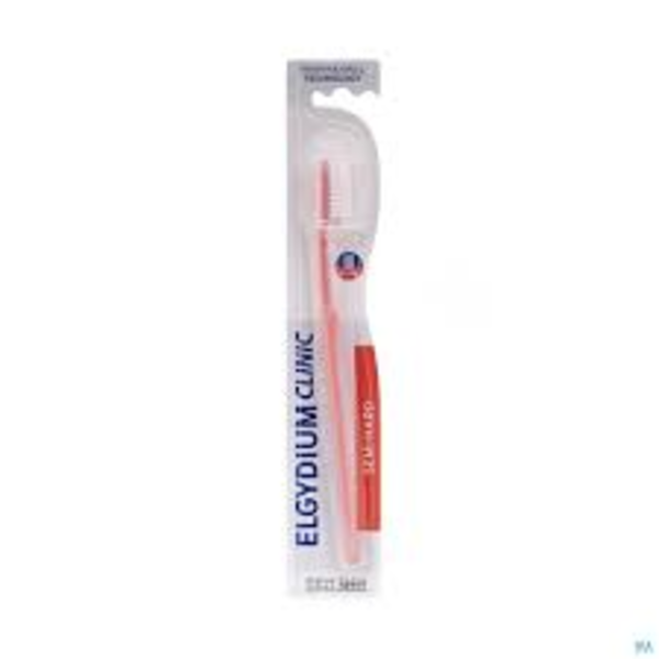 ELGYDIUM CLINIC SOUPLE 25/100 est une brosse à dents mi-dure destinée à l’hygiène quotidienne des dents et des gencives.