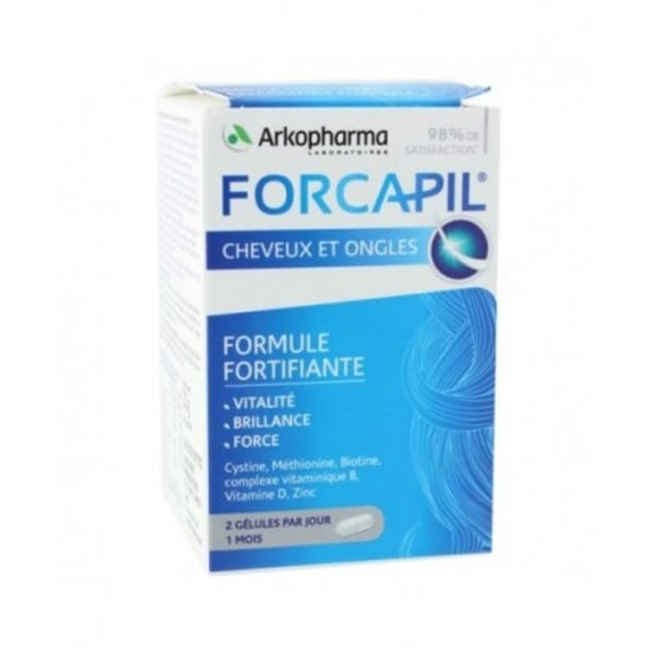 Le cheveu est principalement constitué de kératine, protéine qui lui confère élasticité, résistance et brillance. Elle est synthétisée à partir des acides aminés soufrés, la cystine et la méthionine, sous l’action du zinc et des vitamines du groupe B. La kératine est également un constituant majeur de l’ongle. Forcapil contient une formule complète avec des acides aminés soufrés (cystine et méthionine), des vitamines et des minéraux. Le zinc contribue à la synthèse normale des protéines, comme la kératine. La vitamine B8 contribue au maintien de cheveux en bonne santé, souples, brillants et résistants. Le zinc contribue également à conserver de beaux ongles.