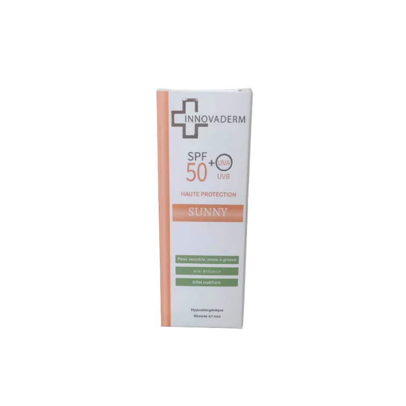 INNOVADERM SUNNY SPF 50+ Peau Mixte a Grasse offre une protection immediate pour les peaux sensibles mixte à grasses à tendence acneiques.