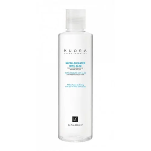 KUORA EAU MICELLAIRE : Une eau micellaire qui élimine les cellules mortes de la peau, les impuretés et la pollution et retire en douceur le maquillage waterproof. Grâce à sa forte teneur en aloès, cette eau micellaire est apaisante et est recommandée pour les peaux plus sensibles.