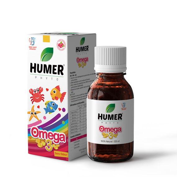 HUMER PHYTO omega 3 vitamine D sans odeur équilibre nerveux immunité examens mémoire et concentration bébé enfant et adulte goût framboise