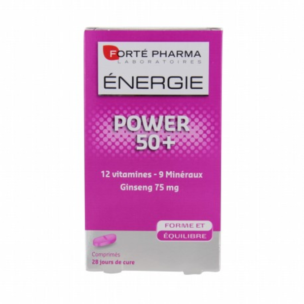 FORTE Pharma Energie Power 50+, 28 ComprimésEnergie Power 50+ est un complexe multivitaminé (12 vitamines + 10 minéraux et oligo-éléments) développé pour lutter contre les déséquilibres biologiques spécifiques aux 50 ans et plus (fatigue générale, baisse de moral).