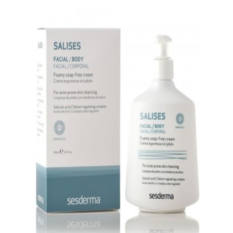 Hygiène quotidienne du visage des peaux séborrhéiques et à tendance acnéique. Sesderma SALISES désincruste la graisse et nettoie les pores. Peut être un traitement unique ou associé à tout autre traitement anti-acné.