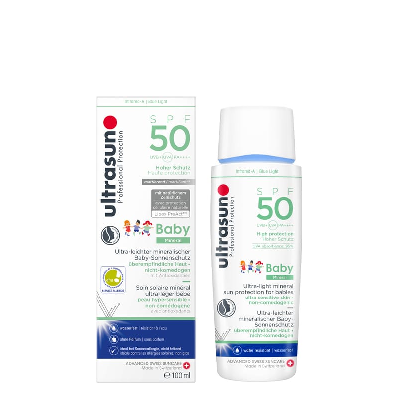 - Emulsion solaire protection UVA et UVB (SPF 50) à absorption rapide, non gras et non collant presque invisible, avec InfraGuard pour une protection contre les infrarouges, dioxyde de titane pour une protection contre la lumière bleue et Lipex PreActTM (aide à prévenir le vieillissement prématuré de la peau) – idéal pour les bébés et les peaux hypersensibles.