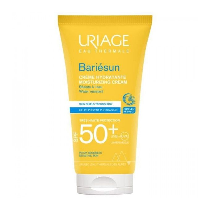 Uriage Bariésun Crème Hydratante Très Haute Protection SPF50+ 50 ml est une crème hydratante de très haute protection UVB-UVA-Lumière bleue qui résiste à l’eau et qui convient aux peaux sensibles. Elle aide à prévenir le photo vieillissement causé par les UV et la lumière bleue.Le fini est invisible, non collant, non comédogène.Ne pique pas les yeux.Testé sous contrôle dermatologique.Fabriqué en France.CONSEIL D’UTILISATION Appliquer une dose suffisante de produit avant l’exposition, par exemple l’équivalent d’une cuillère à café pour le visage et le cou. La réduction de cette quantité diminue le niveau de protection. Renouveler fréquemment l’application, surtout après avoir transpiré, nagé ou s’être essuyé. Même bien protégé, réduire au maximum l’exposition. Ne pas exposer les bébés et les jeunes enfants directement au soleil.Indication : Crème hydratante SPF50+ pour les peaux sensibles.